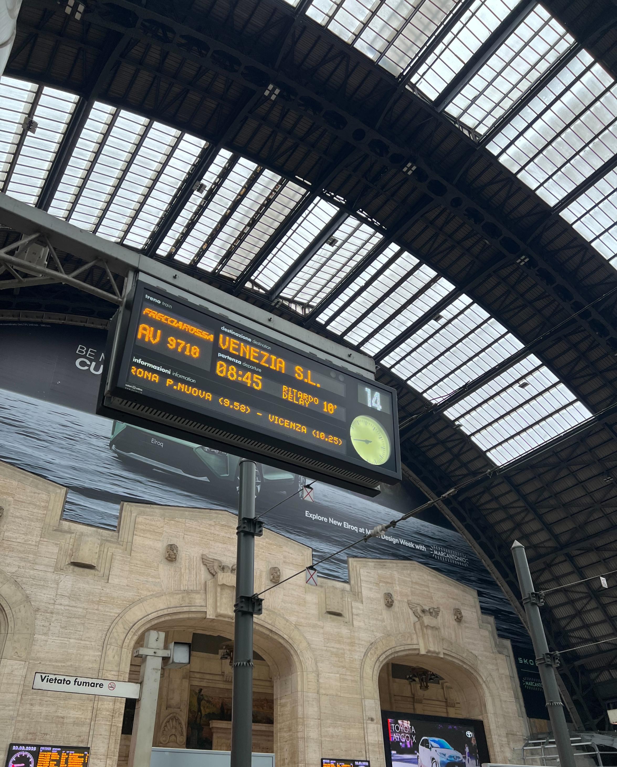 朝早く出発し、ミラノ中央駅から鉄道でヴェネツィアに向かいます。