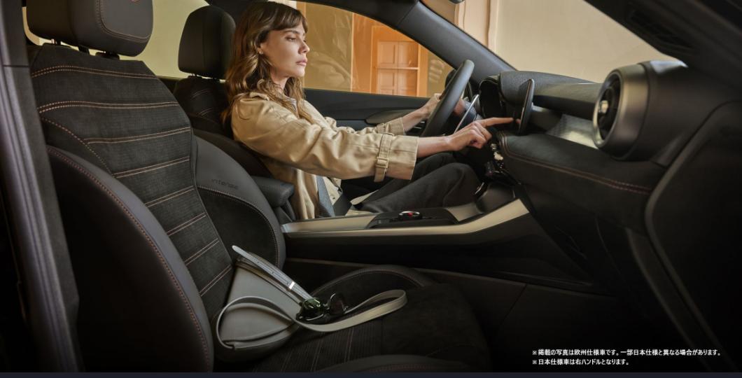 ヘッドレストに刻まれたAlfa Romeo ロゴと、シートを彩るタンカラーのステッチが、スタイリッシュなドライブを演出!